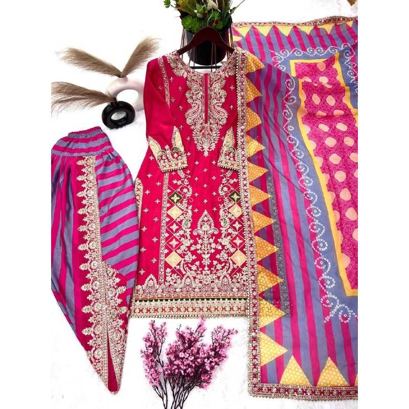 ชุดสูทปาร์ตี้ผู้หญิงขนาดใหญ่ XL มีสไตล์เสื้อ doti salwar และ dupatta สำหรับลุคที่ทันสมัย