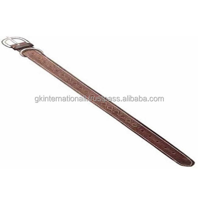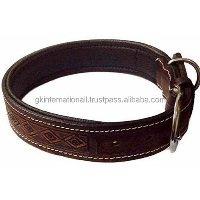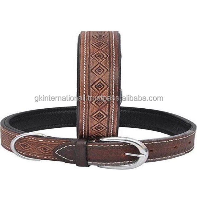 ปลอกคอสุนัขหนังสีน้ำตาลที่ทันสมัยและสะดวกสบายพร้อมการออกแบบแกะสลักด้วยมือนูนนุ่มเบาะด้วยฮาร์ดแวร์สแตนเลส