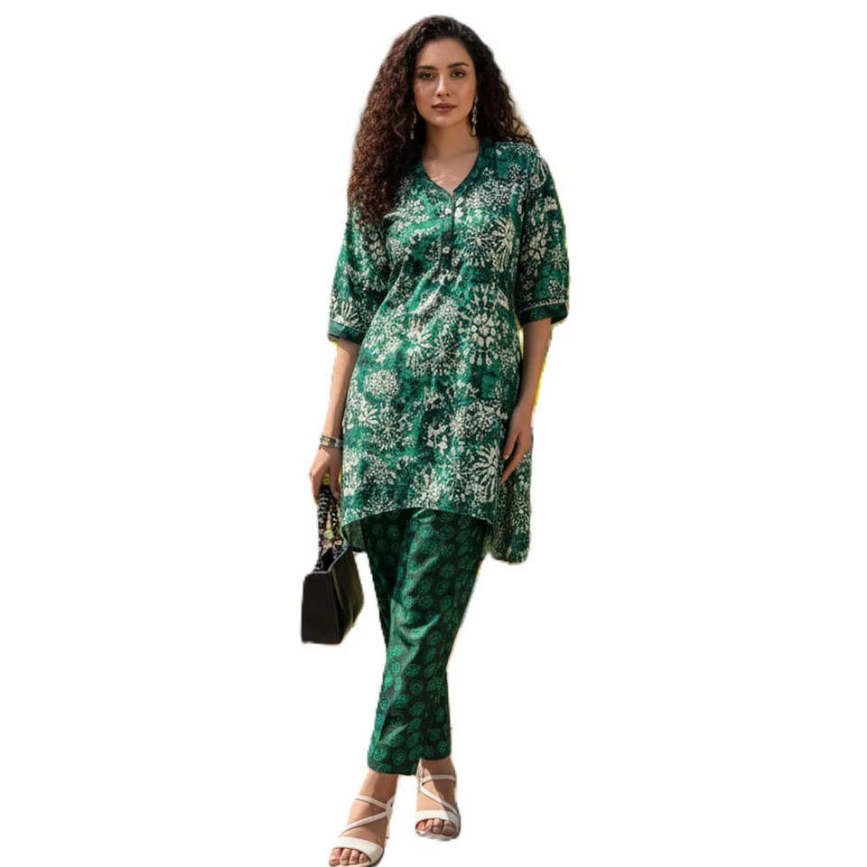 ชุดเซ็ตพิมพ์ลายดอกไม้สุดเก๋สำหรับผู้หญิง สไตล์ร่วมสมัย ลายชนเผ่า คูร์ตะทรงสูงต่ำ กางเกงขายาว ผ้าพันคอเข้าชุด เหมาะสำหรับงานปาร์ตี้ ผลิตจากโพลีเอสเตอร์