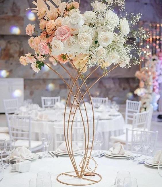 เครื่องประดับกลางโต๊ะโลหะสำหรับงานแต่งงาน