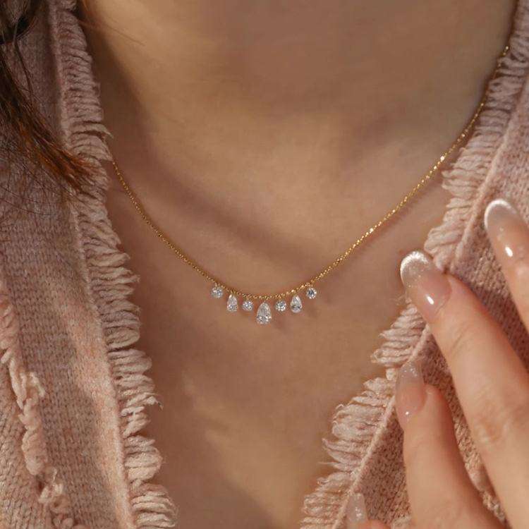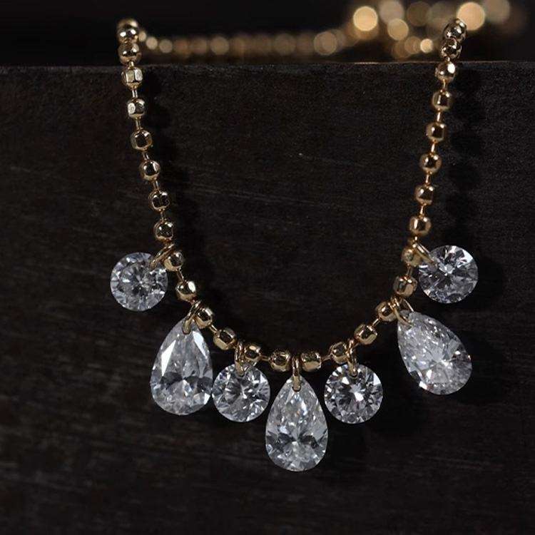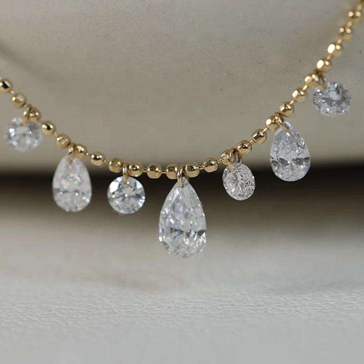 ห่วงโซ่เพชรสำหรับปลูกในแล็บลูกแพร์ทรงกลมมีสไตล์พร้อมจี้สีทองสีโรสโกลด์สีขาวซิลเวอร์และได้รับการรับรองการออกแบบเครื่องประดับที่สง่างาม