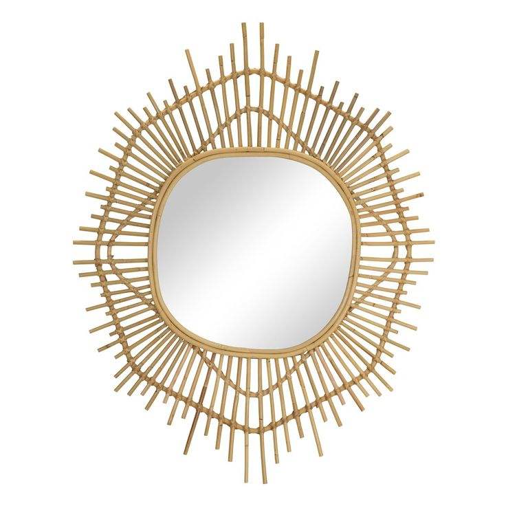 กระจกติดผนังหวายมีสไตล์เหมาะสำหรับการตกแต่งภายในที่ทันสมัยบ้านวัฒนธรรมโบฮีเมียนห้องนอนและการตกแต่งบ้านไร่แบบชนบท