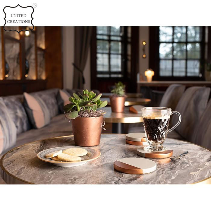 ที่รองแก้วไม้หินอ่อนทรงกลมสไตล์คลาสสิกถ้วยเซรามิกและที่วางเครื่องดื่มสำหรับบ้านสำนักงาน