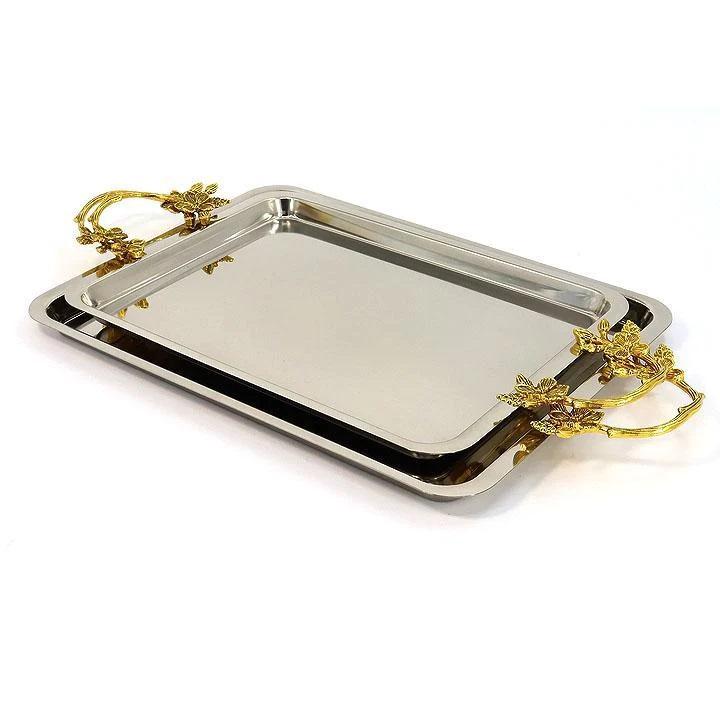 ถาดเสิร์ฟอาหารสแตนเลสพร้อมที่จับฝังกระดูกสำหรับโรงแรมถาดเสิร์ฟอาหารแบบไม่เหมือนใคร