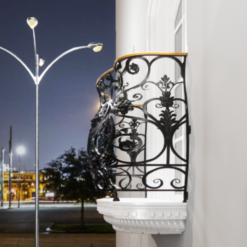ราวระเบียงเหล็กดัดสองชั้นที่มีสไตล์สร้างขึ้นด้วยความทนทานเสน่ห์ในการตกแต่งและเสน่ห์ทางสถาปัตยกรรมที่เหนือกาลเวลา