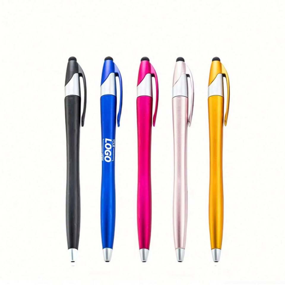 ปากกาสไตลัสแบบลูกกลิ้งสำหรับหน้าจอสัมผัส ปากกาเขียนหมึกสีดำหัวกลาง 2 in 1 พร้อมหัวปากกาสไตลัสสำหรับสำนักงาน