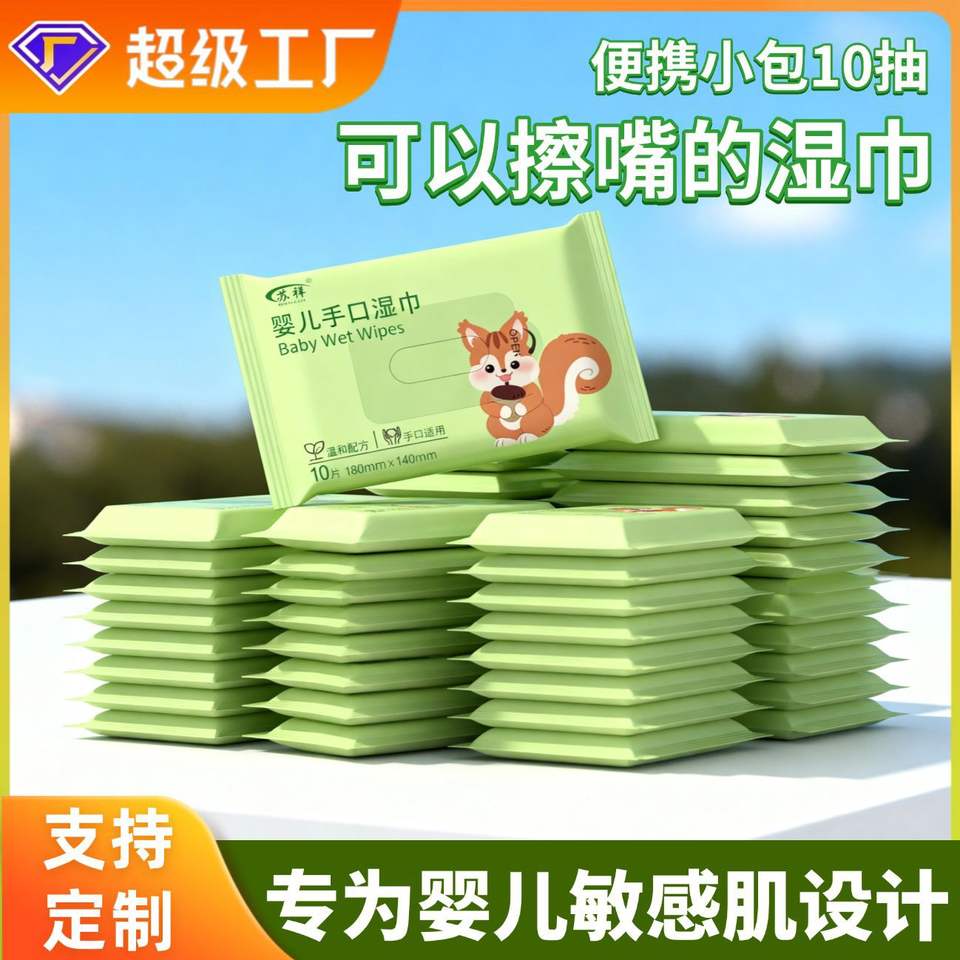 ซูเซียง เบบี้ เวท ไวป์ส 10 ชิ้น แบบพกพา หนาขึ้นสำหรับทำความสะอาดมือและปาก ขนาดพกพาสำหรับเดินทาง