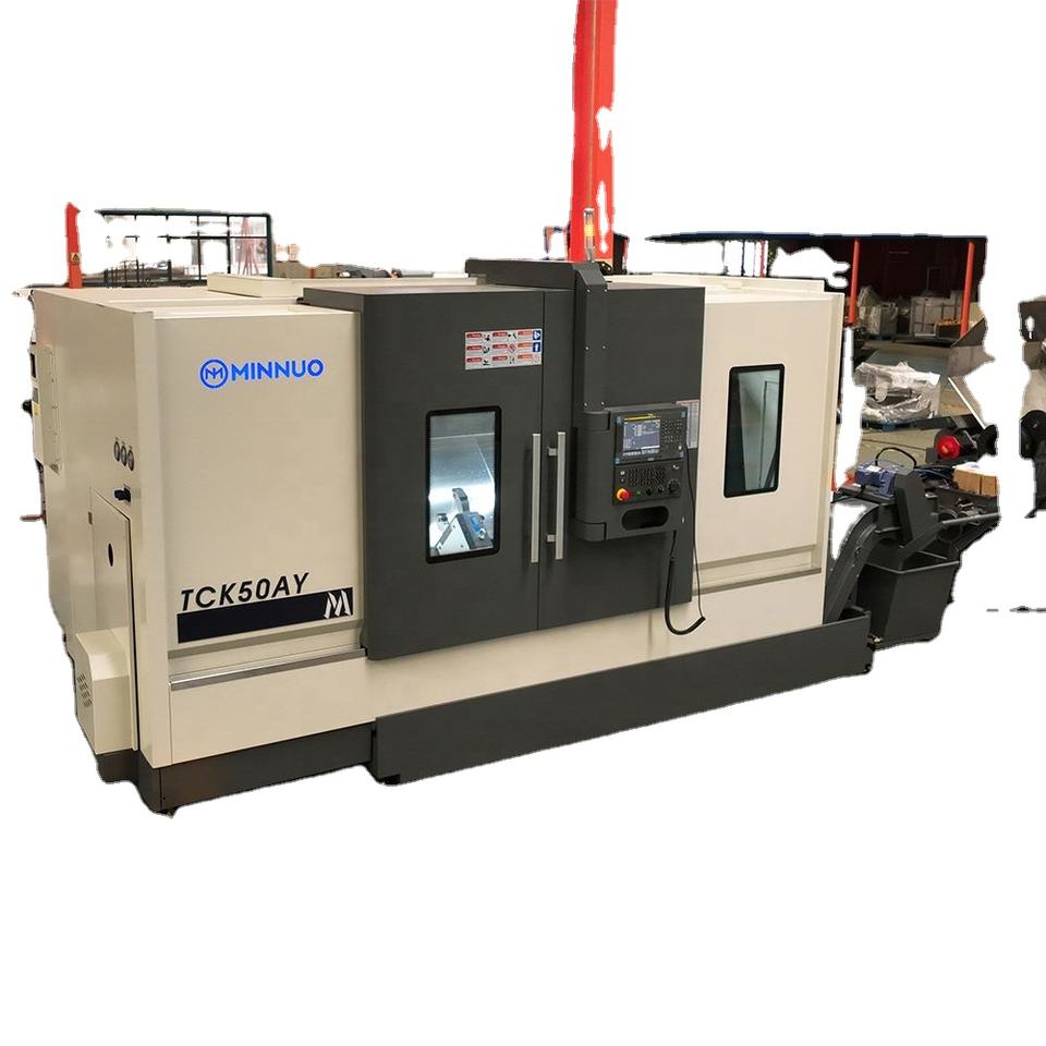 แกนหมุนย่อยติดตั้งเครื่องกลึงแบบเอียงของ CNC สำหรับการทำงานพร้อมกันบนปลายทั้งสองด้าน