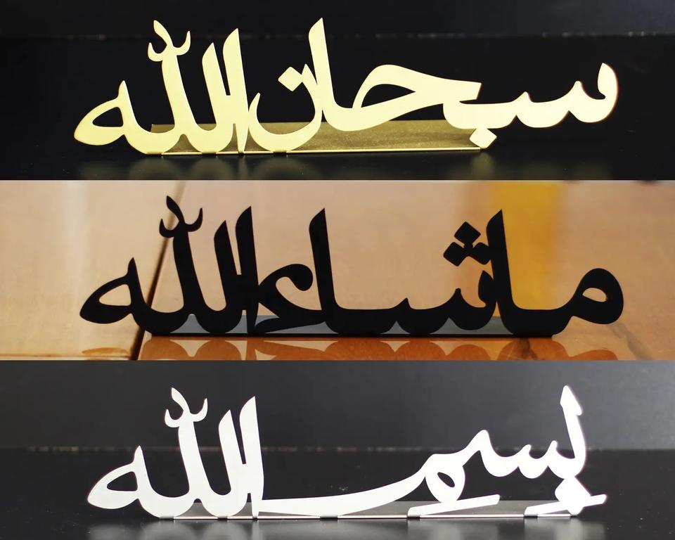 ของตกแต่งโต๊ะโลหะ subhanallah สำหรับบ้านโต๊ะโลหะสีทองตกแต่งโต๊ะอิสลามสำเร็จรูปสีทองอุปกรณ์ตกแต่งบ้าน