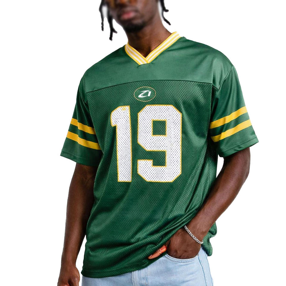 ชุดฟุตบอลอเมริกันแบบซับลิเมชั่น เสื้อฟุตบอลสำหรับผู้ชาย ผ้าตาข่ายโพลีเอสเตอร์ เสื้อฟุตบอลเรียบแบบสวมหัว ชุดกีฬา