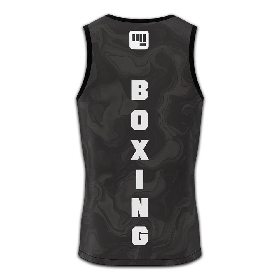 เสื้อกล้ามชกมวยแบบซับลิเมชั่น พิมพ์ลายกราฟิกคุณภาพพรีเมียมที่หน้าอก สามารถปรับแต่งได้ตามต้องการ
