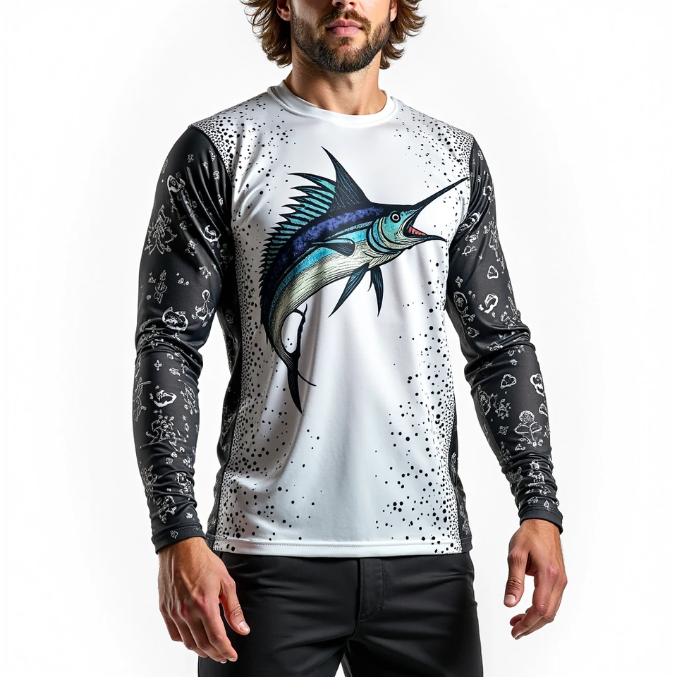 เสื้อตกปลาแขนยาวระบายอากาศได้ดีสำหรับผู้ชาย UPF 50แห้งเร็วผ้าแห้งไว100% ผ้าโพลีเอสเตอร์สำหรับการผจญภัยกลางแจ้ง