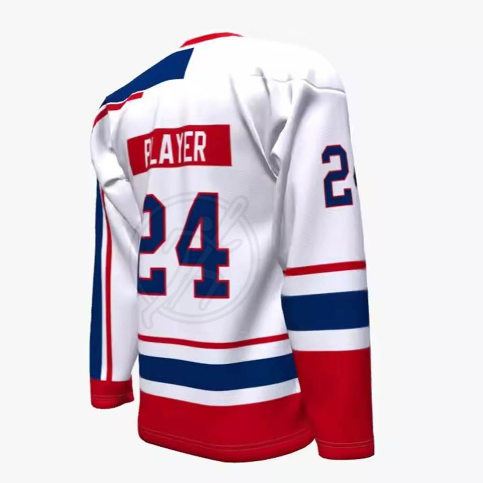 เสื้อเจอร์ซีย์เล่นฮ็อกกี้น้ำแข็งแบบเข้ารูปพิมพ์ลายได้ตามต้องการขายดีดีไซน์ใหม่ระบายอากาศได้ดี