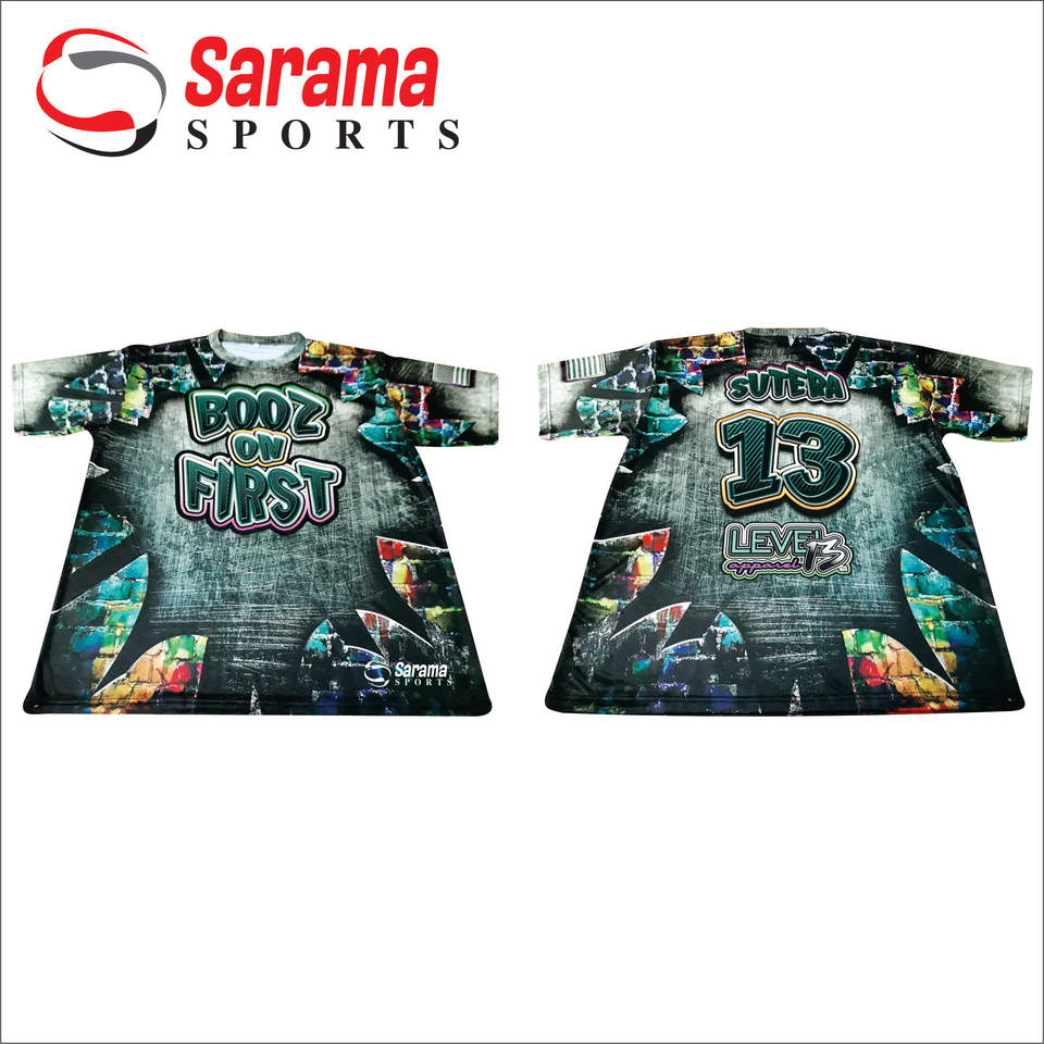 เสื้อเจอร์ซีย์เบสบอลสำหรับผู้ชายเสื้อซอฟต์บอลพิมพ์ลายออกแบบโลโก้ซับลิเมชัน
