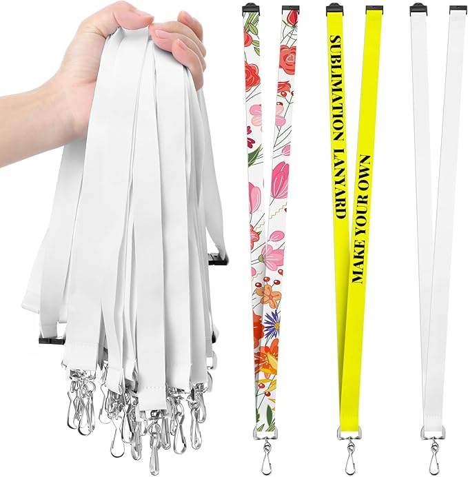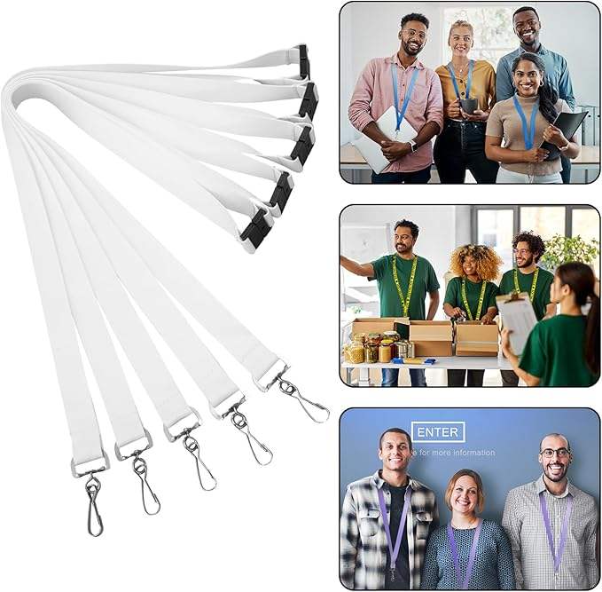 สายคล้องคอเปล่าสำหรับงานซับลิเมชั่น สีขาว พร้อมที่ใส่บัตร DIY สำหรับงานสั่งทำแบบกำหนดเองจำนวนมาก สำหรับใส่บัตรประจำตัว