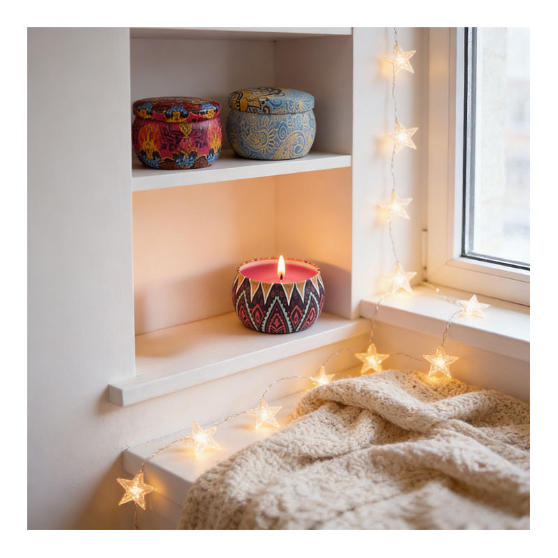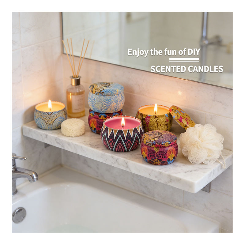 เทียนหอมในภาชนะอะลูมิเนียมพร้อมกล่องหรูหรา แบรนด์ดัง กลิ่นหอมจากถั่วเหลือง สำหรับโปรโมชั่นขายปลีก จัดแสดงแบบคละแบบ