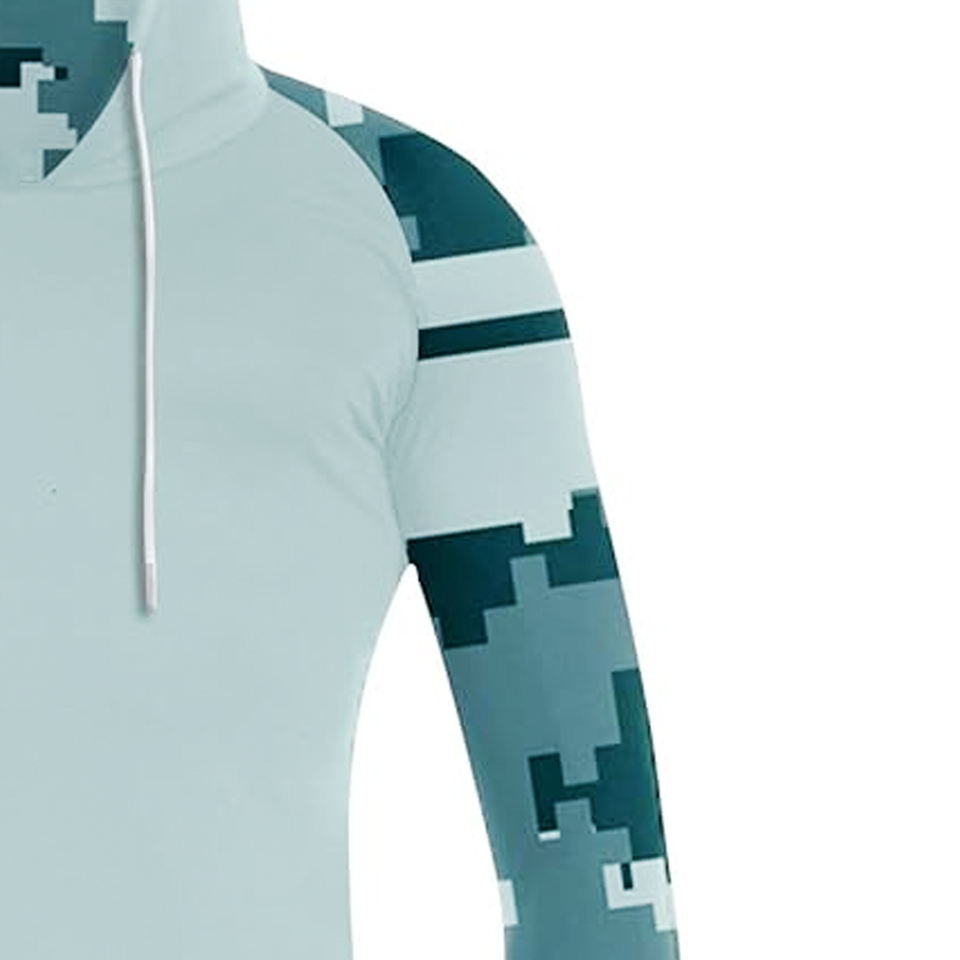 เสื้อฮู้ดแขนยาวสำหรับตกปลา ปีนเขา ล่าสัตว์ แห้งเร็ว ป้องกันแสงแดด ผ้าซับลิเมชั่น