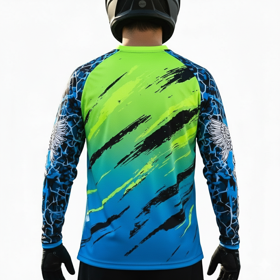 เสื้อเจอร์ซีย์มอเตอร์ครอสแขนยาวแบบซับลิเมชั่น ออกแบบเองได้ แห้งเร็ว ระบายอากาศดี กันยับ เหมาะสำหรับฤดูหนาว ผลิตจากโพลีเอสเตอร์ สำหรับแข่งรถมอเตอร์ไซค์
