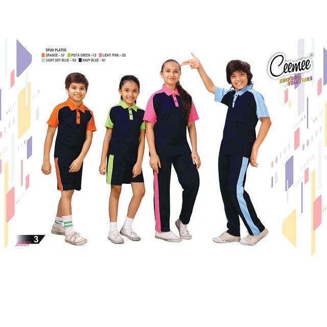 ชุดนักเรียนกีฬาเด็กพิมพ์ลายแบบซับลิเมชั่น รับผลิตตามสั่ง ขายส่ง โลโก้ OEM ผ้าฝ้ายโพลีเอสเตอร์ทนทาน สีสันหลากหลาย