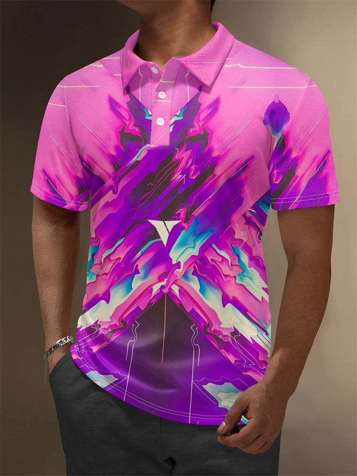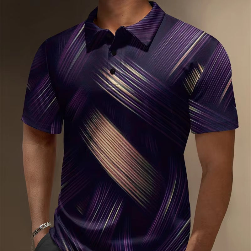 เสื้อเจอร์ซีย์แขนสั้นระบายอากาศสำหรับผู้ชายพิมพ์ลายต่อต้านริ้วรอยเสื้อธุรกิจลำลอง