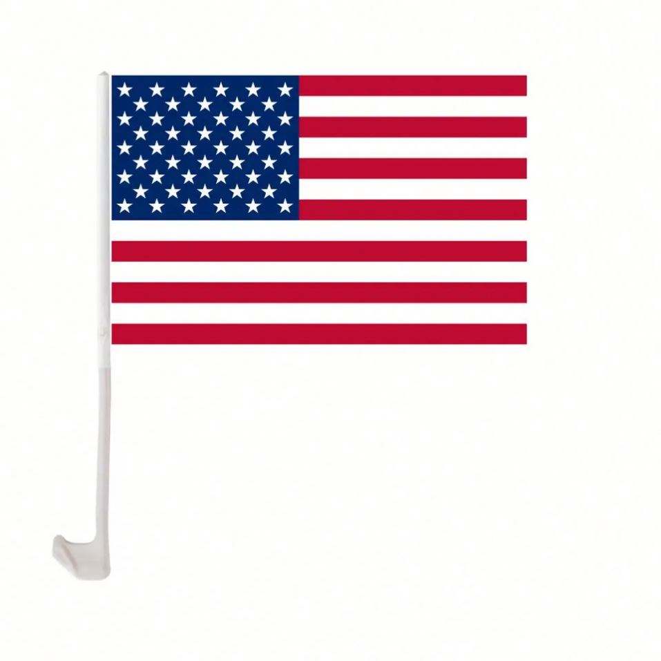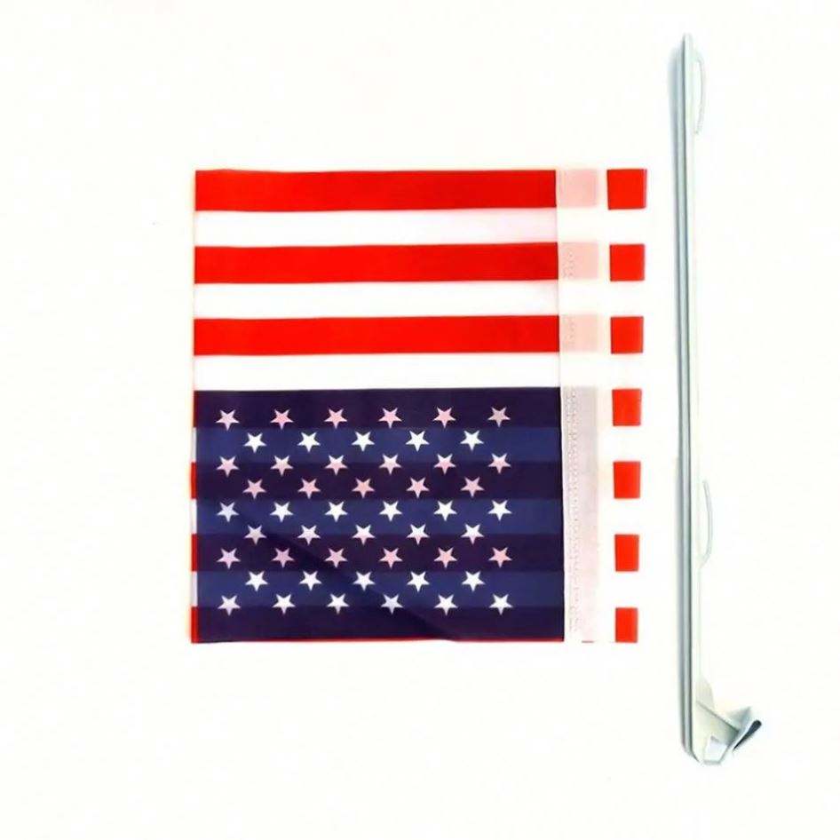 การพิมพ์แบบซับลิเมชั่น ขนาด 12x18 นิ้ว ธงรถยนต์อเมริกันแบบกำหนดเอง พร้อมคลิปหนีบกระจก สองด้าน ขนาด 30x45 ซม. ธงรถยนต์สหรัฐอเมริกา