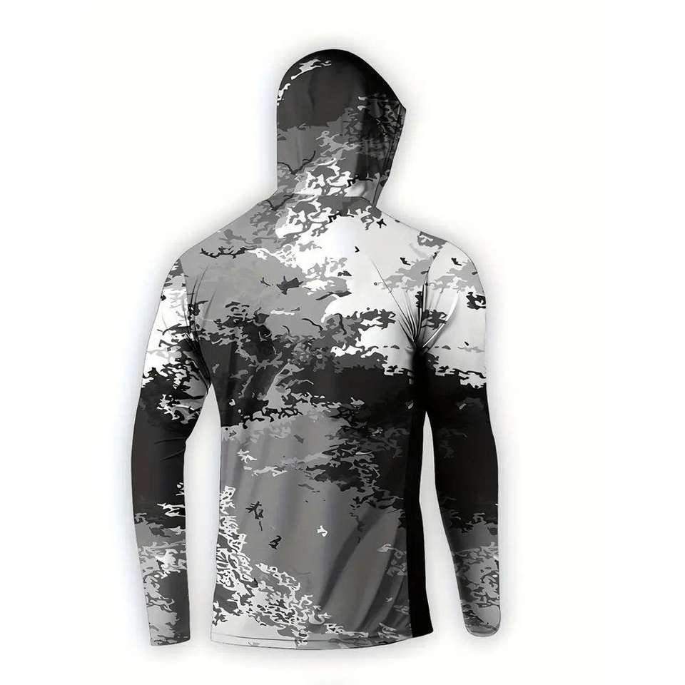 เสื้อฮู้ดตกปลาพิมพ์ลายแบบซับลิเมชั่น ออกแบบเองได้ คุณภาพสูง ผลิตจากผ้าโพลีเอสเตอร์ผสมสแปนเด็กซ์ 100%