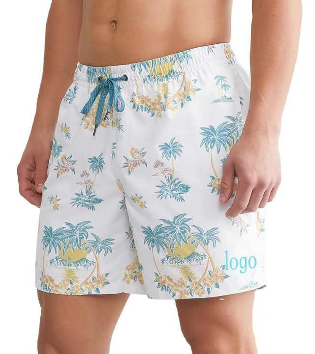 กางเกงว่ายน้ำขาสั้นสำหรับผู้ชายกางเกงขาสั้นพิมพ์ลายแบบแห้งเร็วสำหรับใส่ในฤดูร้อนของผู้ชายกางเกงขาสั้นใส่ลำลองใส่โลโก้ได้ตามต้องการ