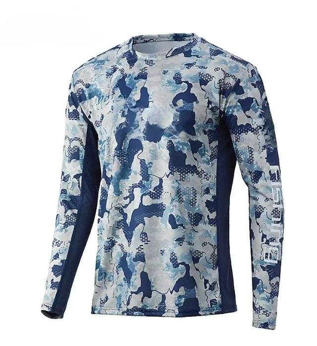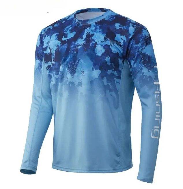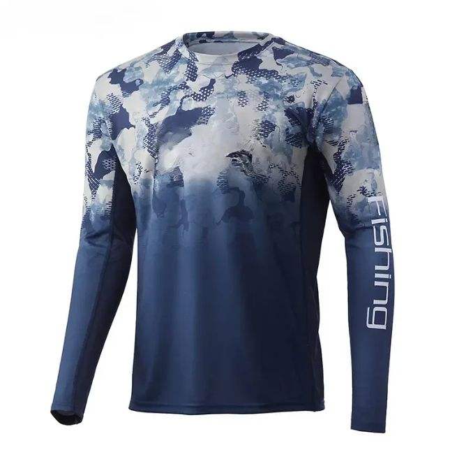 เสื้อตกปลาแขนยาวผ้าสแปนเด็กซ์โพลีเอสเตอร์100% พิมพ์ซับลิเมชัน