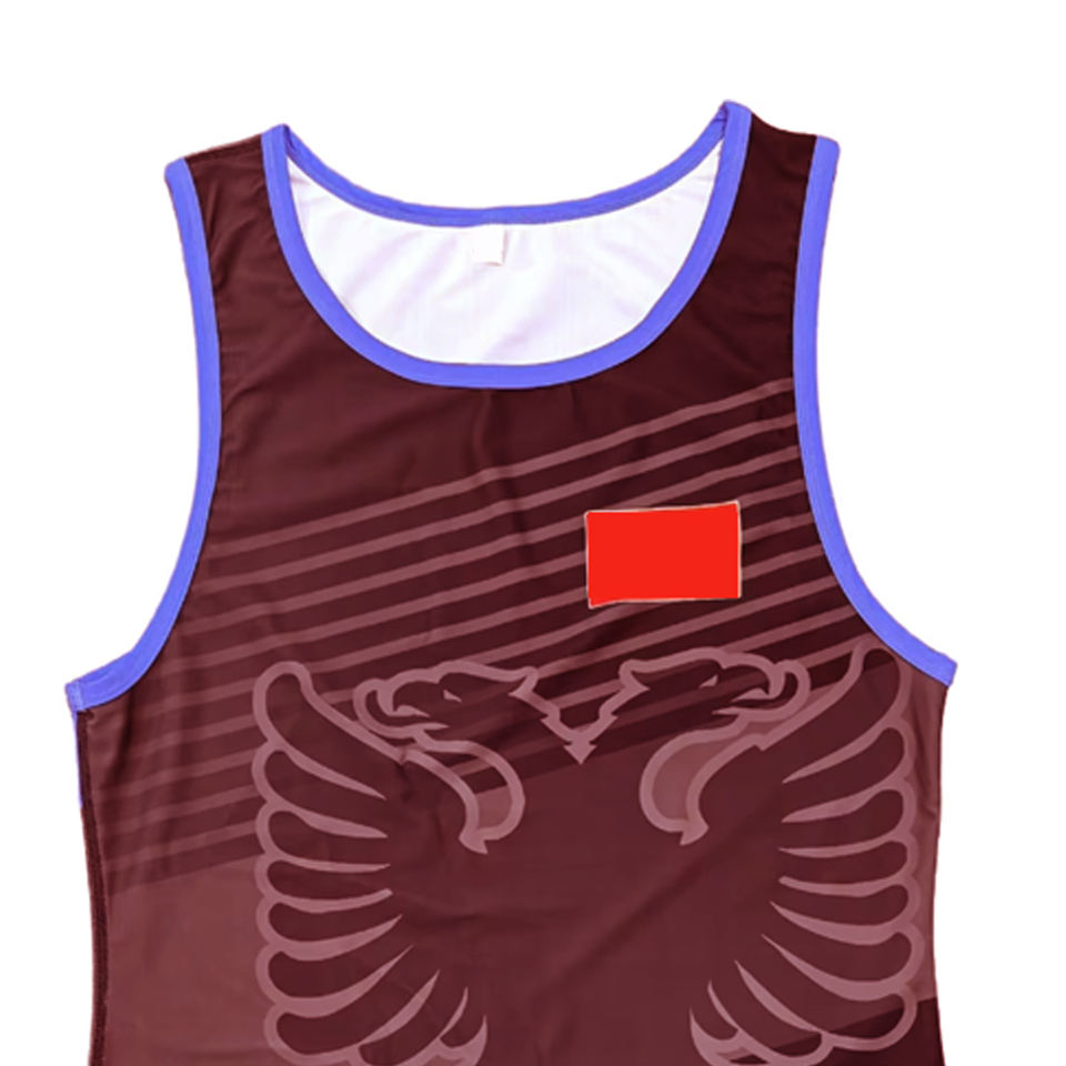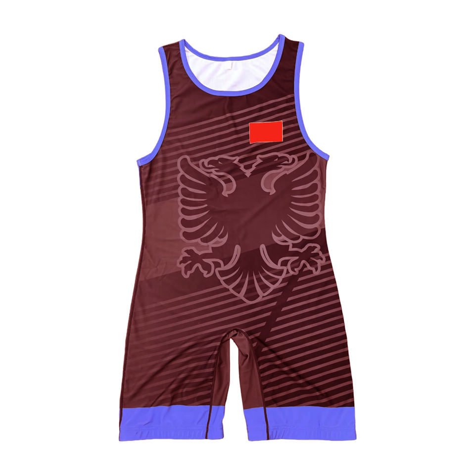 ชุดนักมวยปล้ำพิมพ์ลายแบบซับลิเมชั่น คุณภาพเยี่ยม ออกแบบโลโก้ของคุณเอง ตัดเย็บอัตโนมัติ ชุดนักมวยปล้ำสำหรับผู้ใหญ่