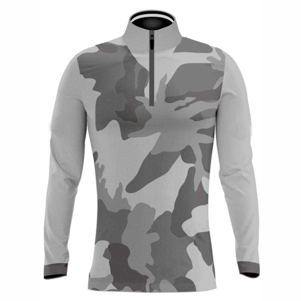 เสื้อแขนยาวซิปสี่ส่วนแบบกลับด้านได้ พิมพ์ลายแบบซับลิเมชั่น เสื้อผ้าออกกำลังกายแบบกำหนดเอง น้ำหนักเบา ระบายอากาศได้ดี เสื้อสำหรับฝึกซ้อมกีฬา