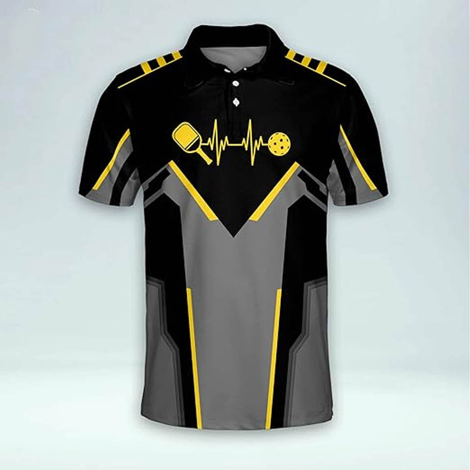 เสื้อกีฬาแขนสั้นผู้ชายเสื้อพิเคิลบอลพิมพ์ลายคอโปโลแห้งเร็วระบายอากาศ