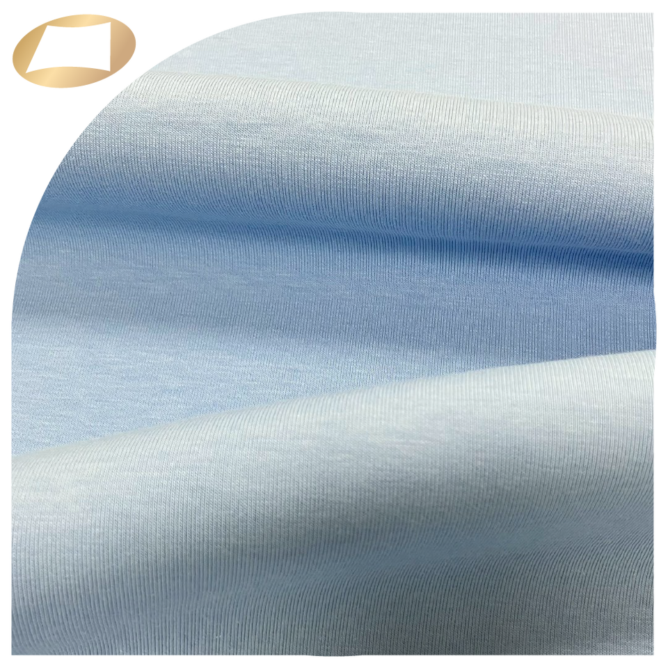 ผ้าเนื้อนุ่มคล้ายผ้าฝ้าย 77% คอตตอน 15% โพลีเอสเตอร์ 8% สแปนเด็กซ์ ผ้าถักสองชั้นสำหรับชุดลำลอง