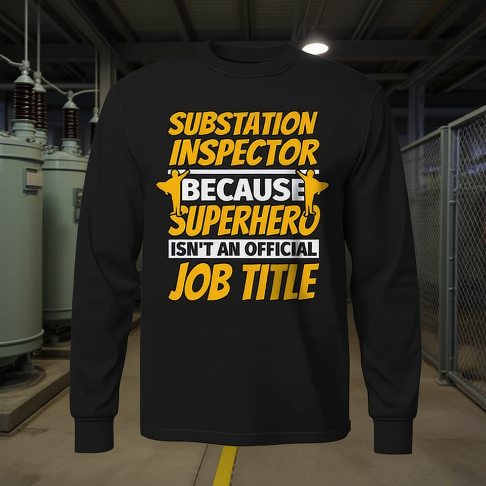 เสื้อยืดแขนยาวสำหรับผู้ตรวจสอบสถานีไฟฟ้า คอกลม ยูนิเซ็กซ์ พิมพ์ลายสกรีน สำหรับช่างไฟฟ้า พนักงานอุตสาหกรรมพลังงาน