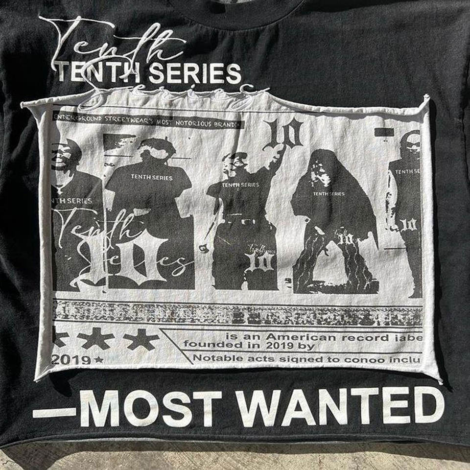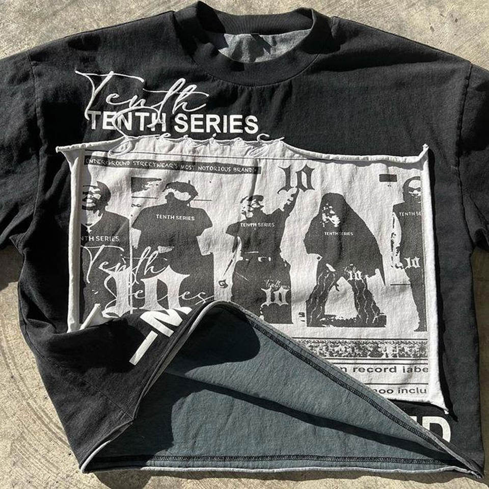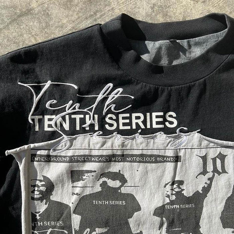 เสื้อยืดแขนคู่ทรงหลวม แต่งลายปักละเอียดอ่อน ลายพิมพ์แบบซับลิเมชั่นทั่วตัว สไตล์ทันสมัย