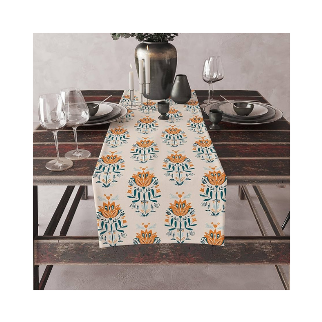ผ้าปูโต๊ะลายปักสีครีมแบบนามธรรม เนื้อผ้าละเอียดอ่อนสำหรับตกแต่งสไตล์โมเดิร์น ผลิตจากผ้าฝ้าย 100% น้ำหนัก 120 GSM ขนาด 72 นิ้ว ผลิตในอินเดีย รับผลิตแบบ OEM ODM มาตรฐาน ISO พร้อมบริการจัดส่ง