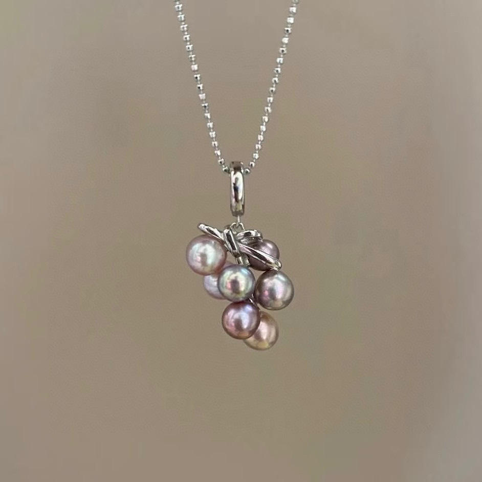 สร้อยคอดีไซน์องุ่นสีม่วงพร้อมไข่มุกน้ำจืดแท้ หัวเข็มขัดอเนกประสงค์แบบถอดได้ สไตล์อเนกประสงค์