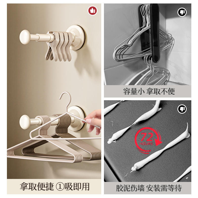 ที่แขวนเสื้อผ้าแบบถ้วยดูดติดผนัง ปรับระดับได้ สำหรับจัดเก็บเสื้อผ้าในบ้านและระเบียง