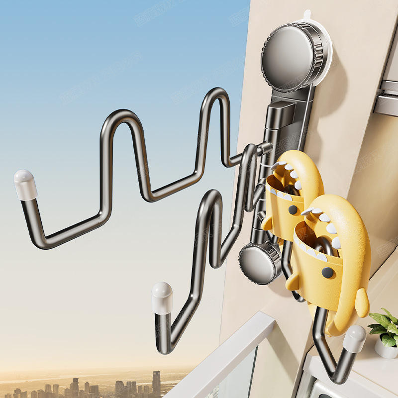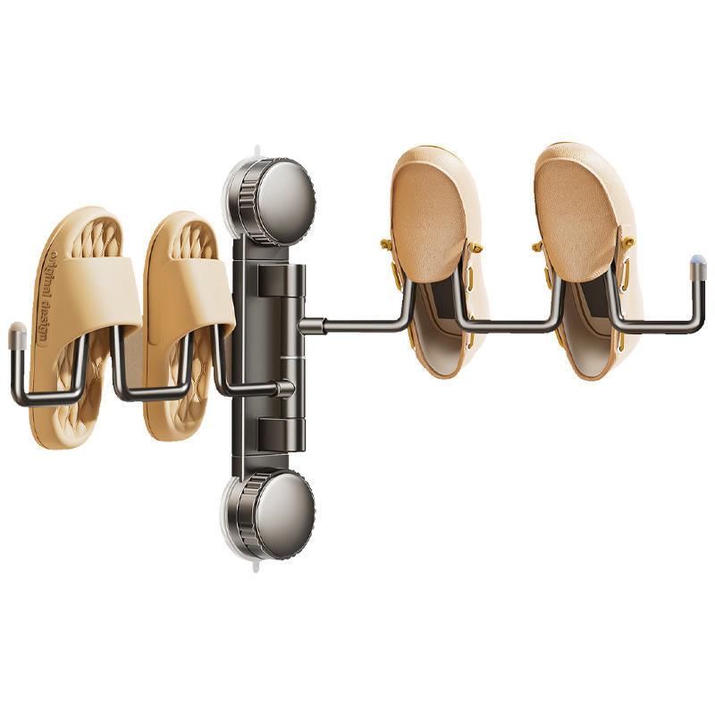 ชั้นวางรองเท้าแบบติดผนังพร้อมถ้วยดูดสุญญากาศ พับเก็บได้ หมุนได้ ใช้สำหรับตากผ้าในห้องน้ำ ห้องนอน ห้องนั่งเล่น จุรองเท้าได้ 4-5 คู่