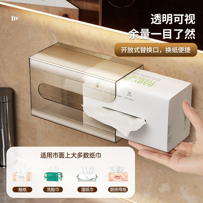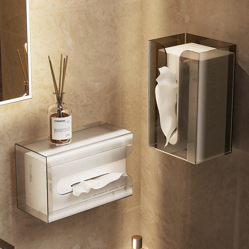 กล่องกระดาษทิชชู่แบบติดผนังทรงสี่เหลี่ยมไม่ต้องเจาะห้องน้ำที่ใส่กระดาษทิชชู่อเนกประสงค์
