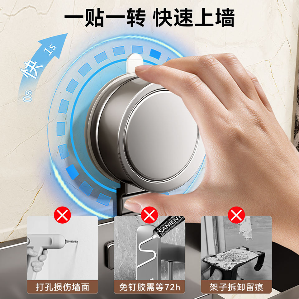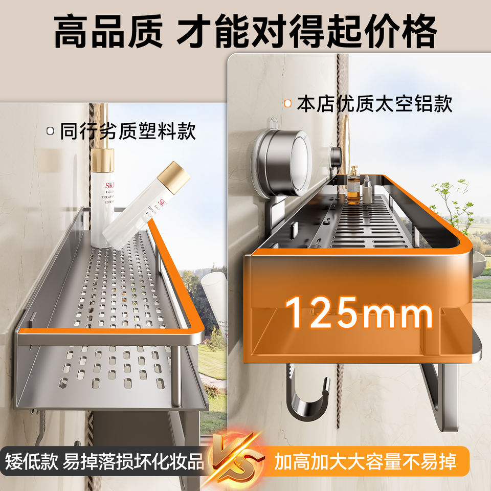 ชั้นวางของในห้องน้ำแบบติดผนังรูปสี่เหลี่ยมผืนผ้า ติดตั้งด้วยระบบสุญญากาศ ไม่ต้องเจาะผนัง ทนทาน ความลึก 8-11.9 นิ้ว สำหรับอ่างล้างหน้าและห้องน้ำ