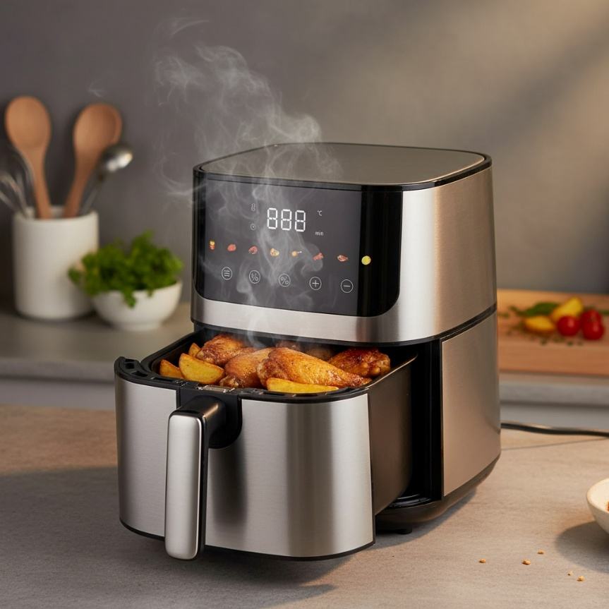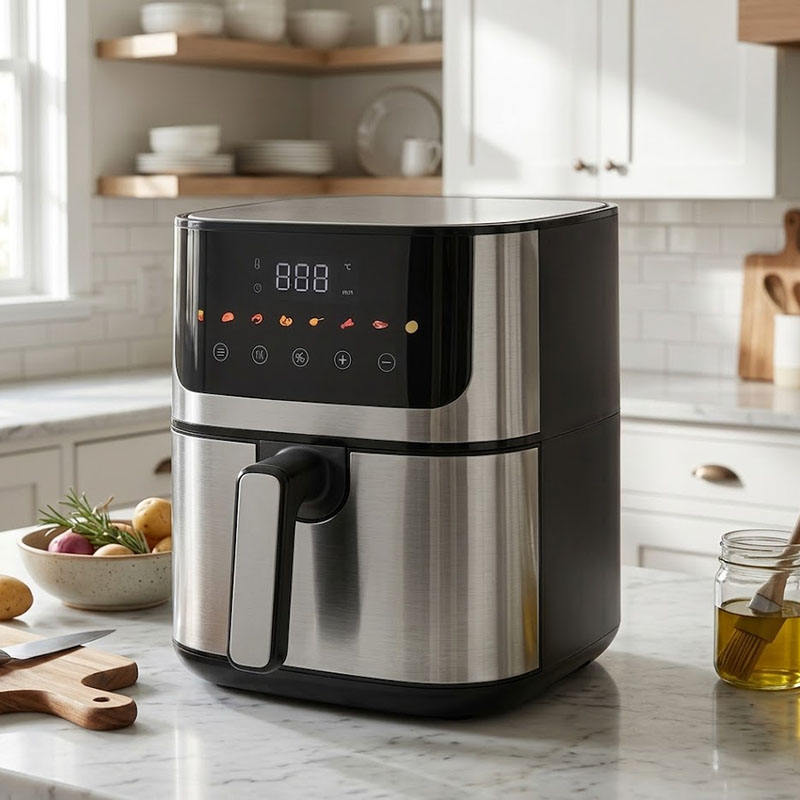 หม้อทอดไร้น้ำมันอัจฉริยะ Sudex ขนาด 4.5 ลิตร ทำจากสแตนเลส พร้อมหน้าจอดิจิตอลและระบบทำความร้อนเร็ว สำหรับใช้ในครัวเรือน