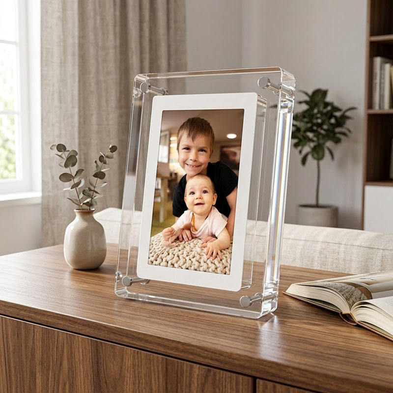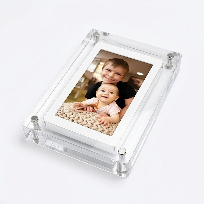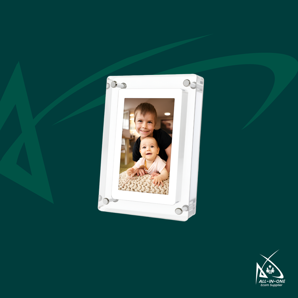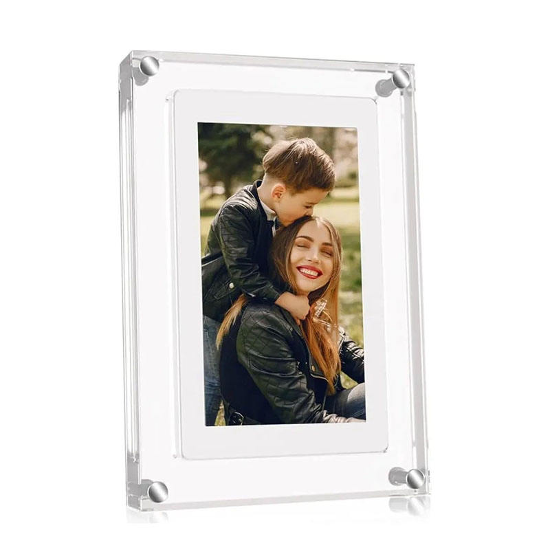กรอบรูปดิจิตอล Sudex ขนาด 5 นิ้ว 720P NFT พร้อมแบตเตอรี่แบบชาร์จได้ หน่วยความจำ 4GB พอร์ต USB-C จอแสดงผล LCD อะคริลิค รองรับวีดีโอ
