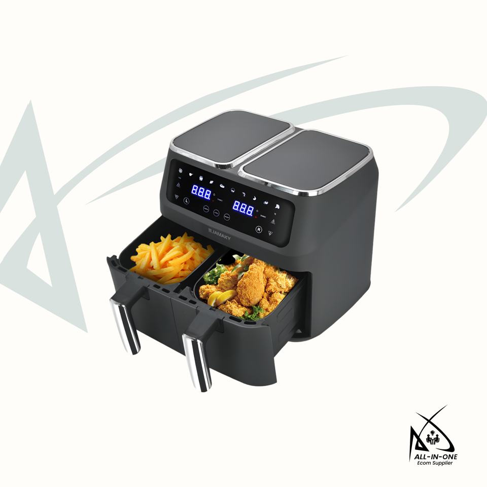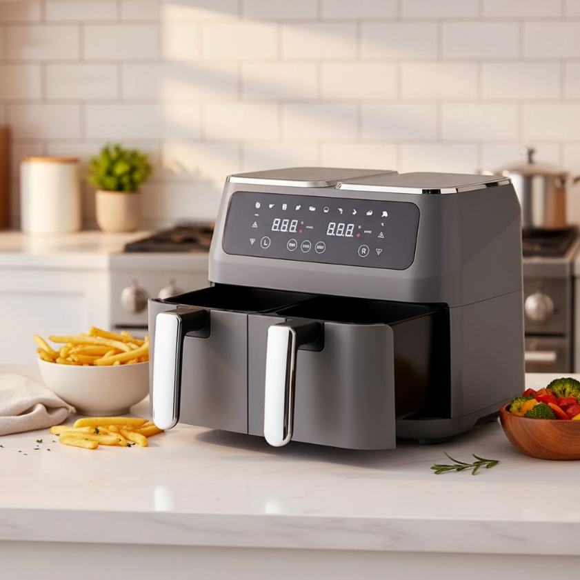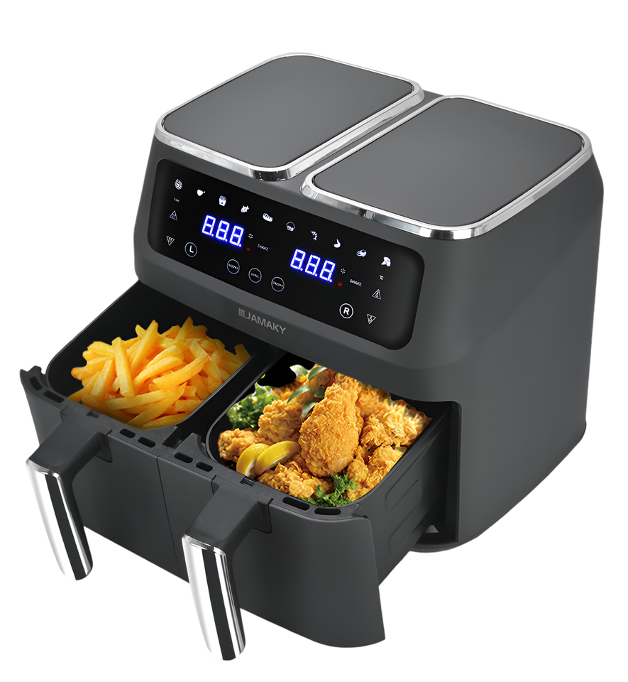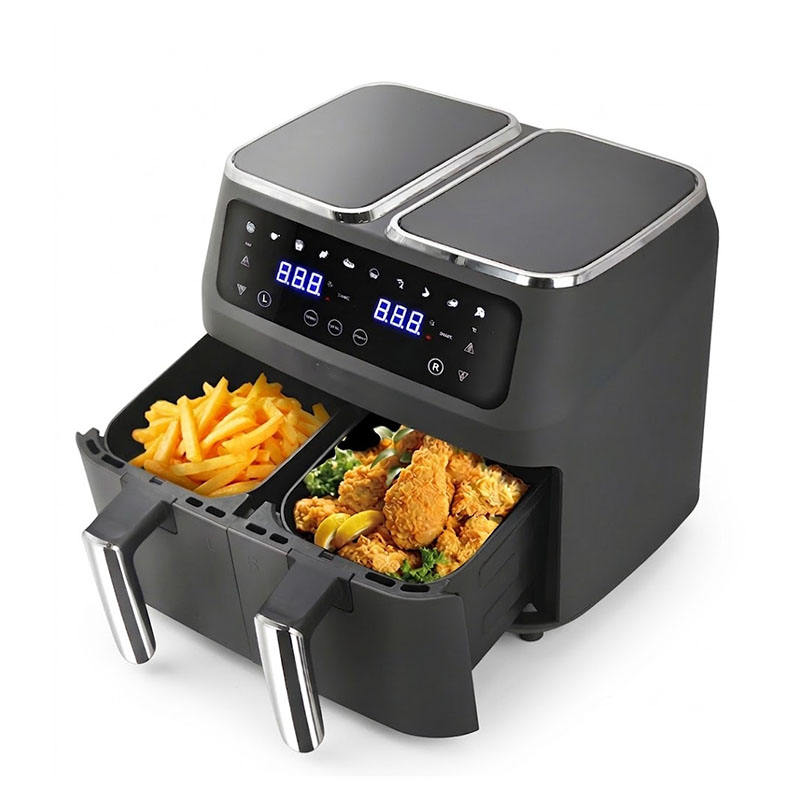 หม้อทอดไร้น้ำมันไฟฟ้าขนาดเล็ก Sudex Compact พร้อมหน้าจอ LCD พลาสติก ทำความสะอาดง่าย มัลติฟังก์ชั่น ตะกร้าคู่ สำหรับครัวเรือน ทำอาหารเพื่อสุขภาพ