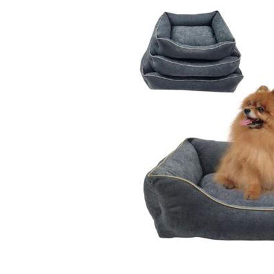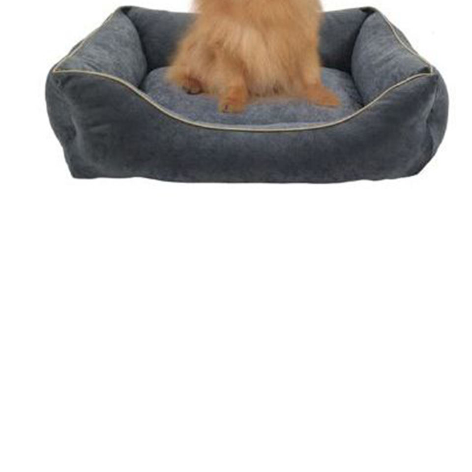 ชุดเตียงสุนัขหนังกลับ (S/M/L) แบบมีขอบเลื่อนได้ รูปทรงสี่เหลี่ยม สีเทา ทันสมัย กันน้ำ กันลื่น ใช้ได้ทุกฤดู