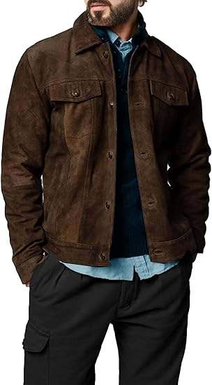 แจ็กเก็ตหนังนิ่มหนังแท้สำหรับผู้ชายสีน้ำตาลหนังนิ่มแจ็คเก็ตนักขี่จักรยานหนังกลับเหมาะสำหรับทุกฤดูกาล