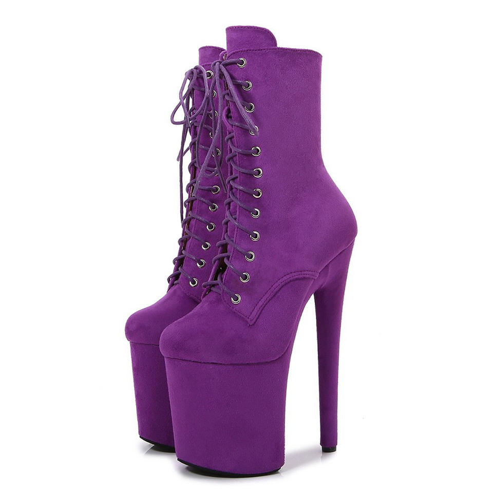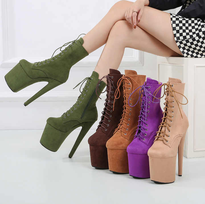รองเท้าบูทเต้นโพลแดนซ์แบบผูกเชือก หนังกลับ แต่งลูกไม้ เซ็กซี่ ส้นสูง 20 ซม. สำหรับผู้หญิง