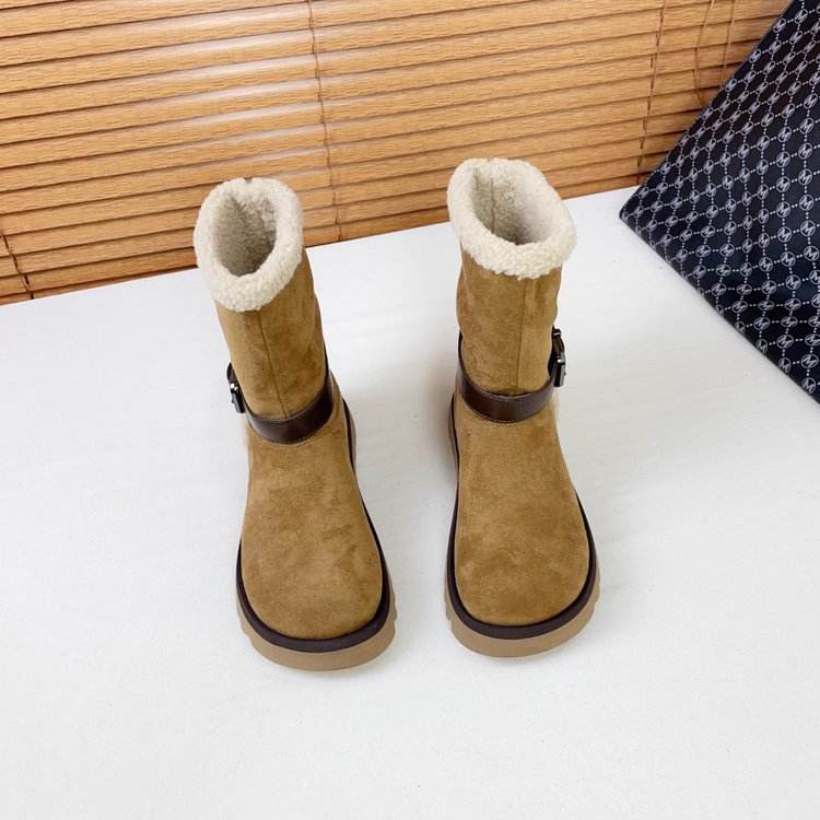 รองเท้าบูทหิมะหนังกลับทรงสั้น สีพื้น ส้นเตี้ย (ต่ำกว่า 3 ซม.) หัวกลม แฟชั่น สำหรับฤดูหนาว รองเท้าบูทยาง