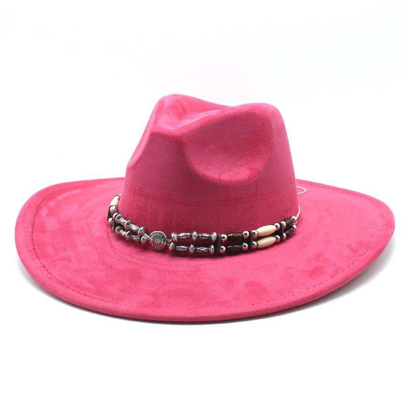 หมวกคาวบอยทรงบิ๊กโรล วัสดุหนังกลับ สำหรับผู้ชายและผู้หญิง สีชมพู ระบายอากาศได้ดี ใช้ได้ทุกฤดู เหมาะสำหรับงานปาร์ตี้และธุรกิจ