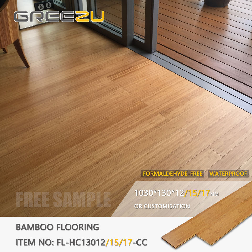 พื้นไม้ไผ่โมโซแบบวิศวกรรม เคลือบเงาสูง ระบบประกบแบบลิ้นและร่อง ติดตั้งด้วยกาว ปูพื้นไม้ไผ่