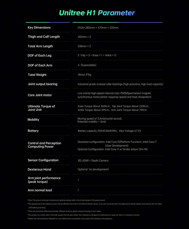 หุ่นยนต์คล้ายมนุษย์ H1ชิ้นเดียว